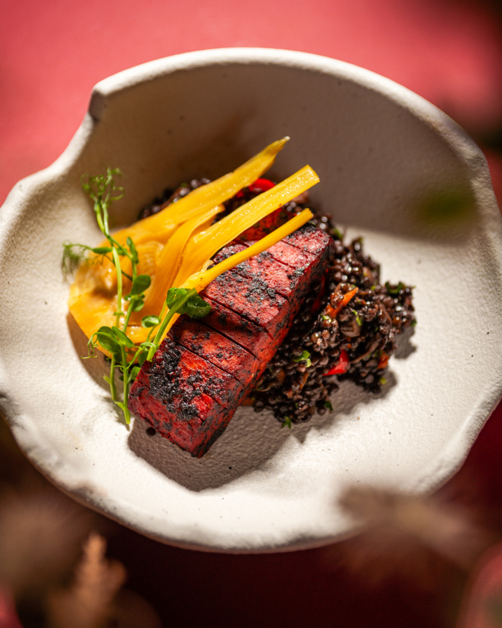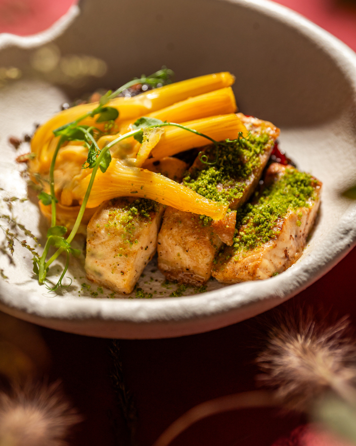- tofu a'la łosoś / czarna soczewica / warzywa / boczniak koper włoski z anyżem i pomarańczą 59 zł
