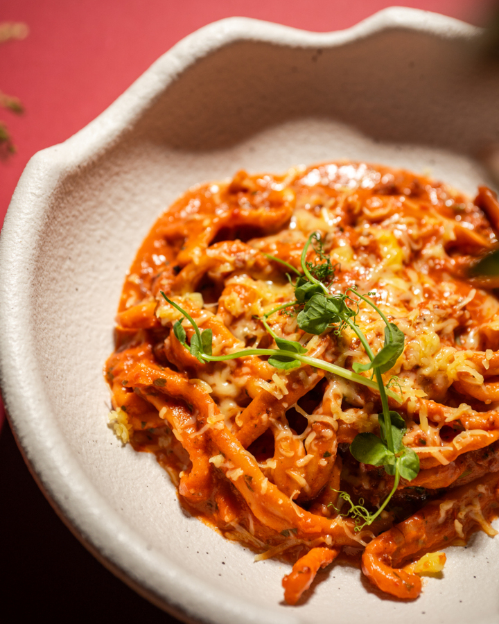 - casarecce / salsiccia / cebula / czosnek / chilli / pomidory mascarpone / oliwa / czerwone wino / czarny bursztyn 49 zł